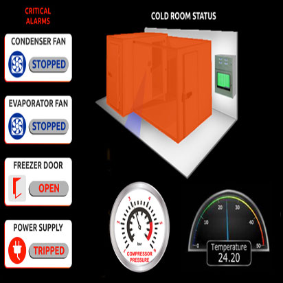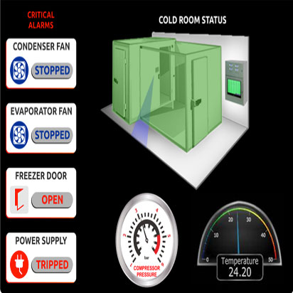 Various online indications from freezers, such as: freezer’s room temperature, outdoor temperature, compressor temperature, humidity, cooling control, compression control, defrost control, light control etc.